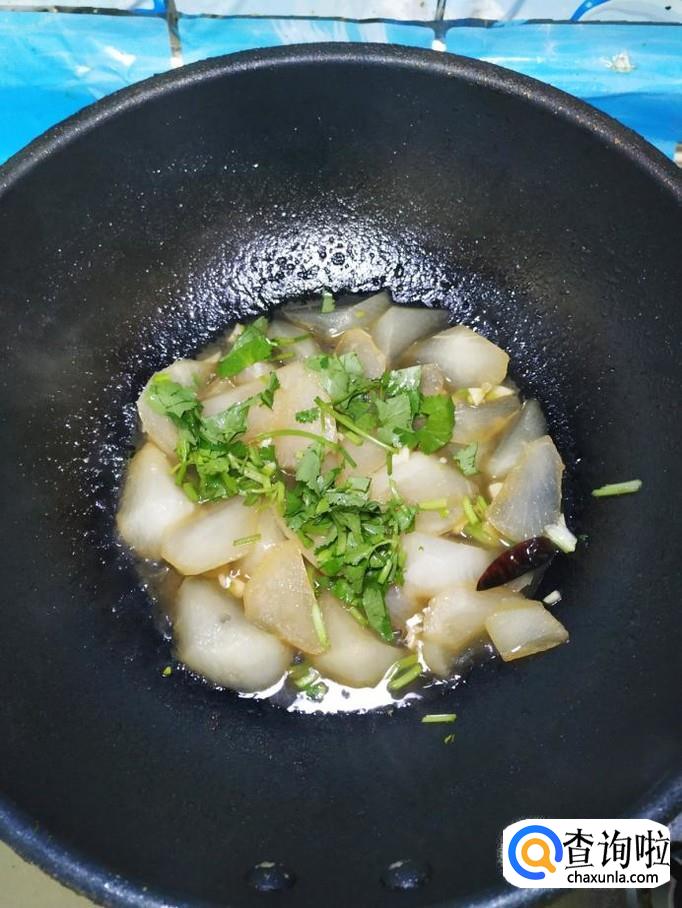 再准备适量香菜,洗净后切碎,放在上面,搅拌均匀。