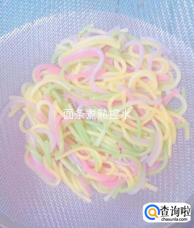 食材:五彩细面,鸡蛋,西兰花,海苔粉。