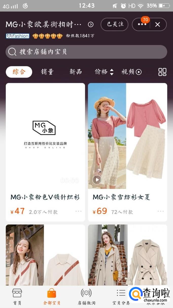 MG小象欧美街拍时尚女装,粉丝数1841万,其中风格以清新甜美为主,价格实惠,几十到几百不等,小仙女不可错过。