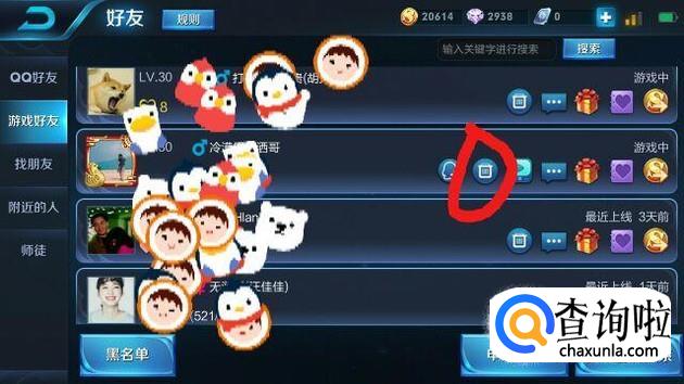 里面就会有你所有的好友,包括了qq好友和游戏好友。在这里,我们点击游戏好友。