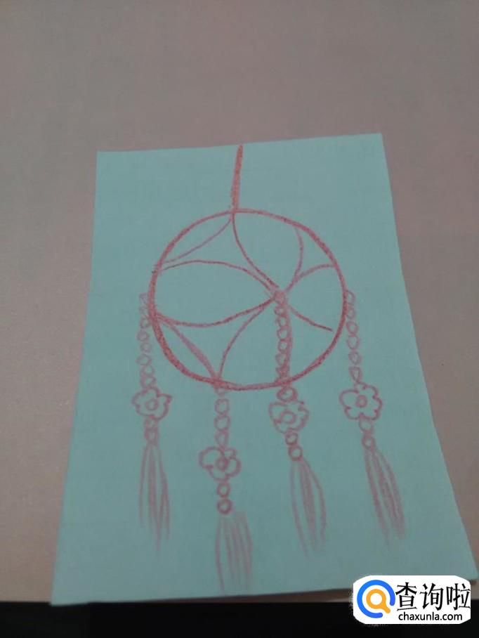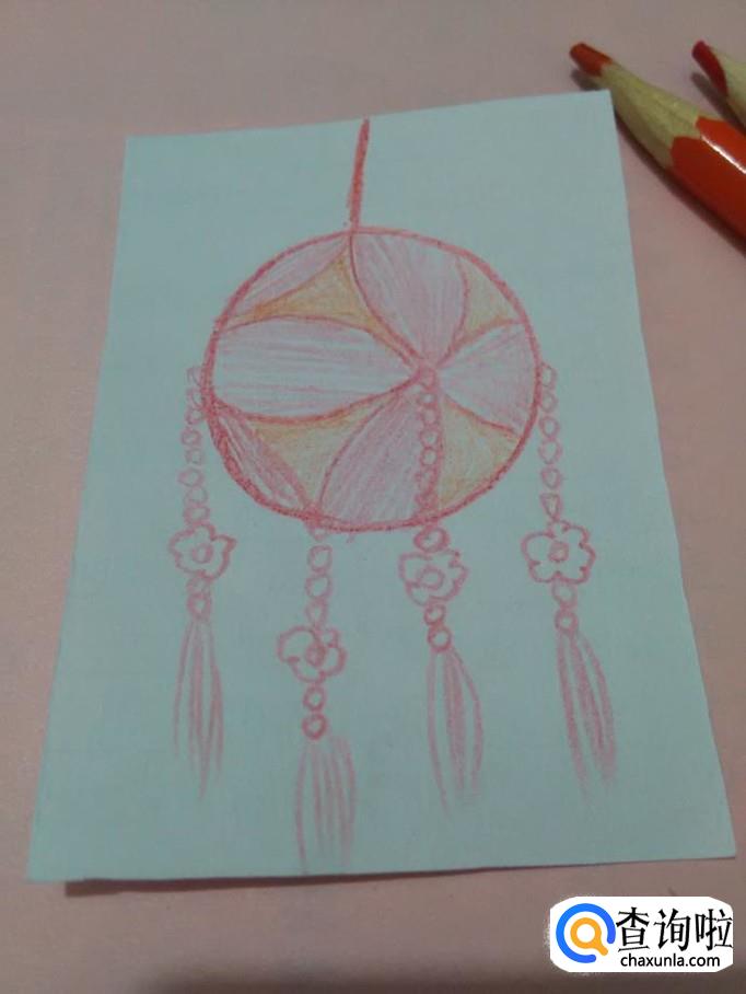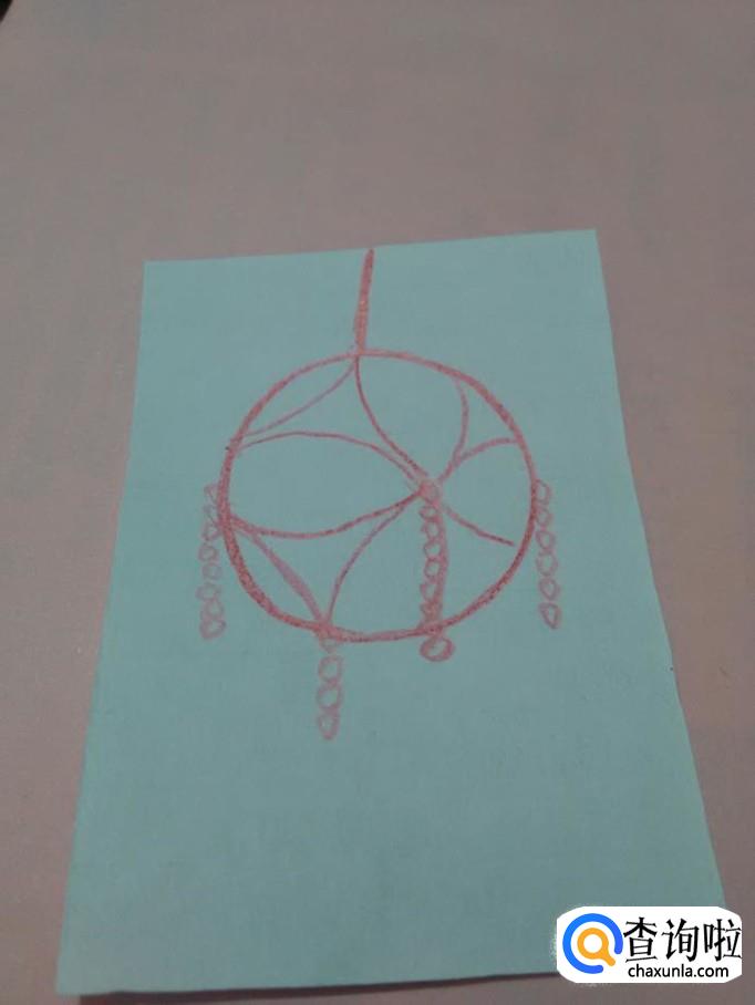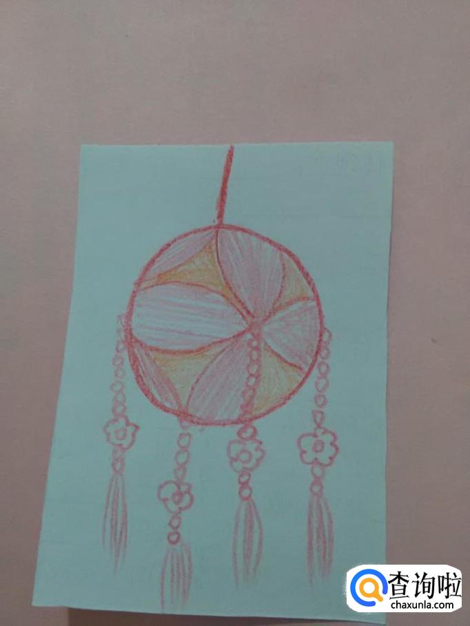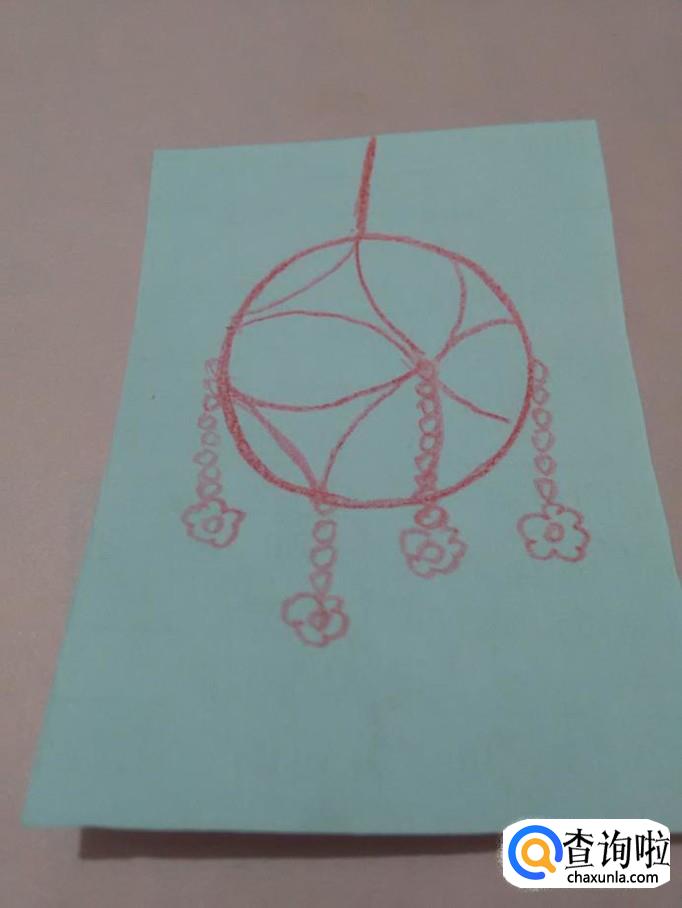 画三月三绣球,要画出圆圆的球、绣球上面的四片花样、吊绳、绣球珠子和穗子,下面就开始画绣球。