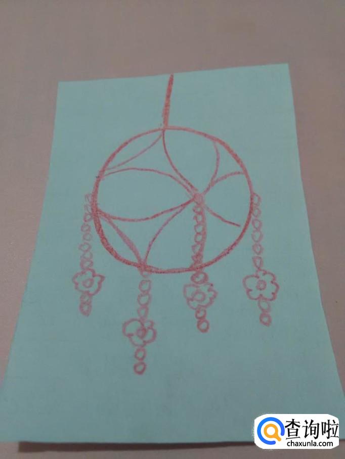 在每串珠子下面,画一朵珠花,画成普通的小花即可。