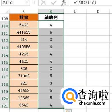 并在编辑栏中输入公式:=LEN(A110);目的是要计算出A110:A121每个单元格内有多少个字,我们就可以利用这些数来进行排序。。公式中LEN(A110)的LEN函数作用是统计单元格内字符个数。