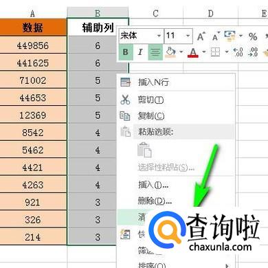 即时,A110:A121的数据即以字数由多到少排列。接着,选中B109:B121;再右击,弹出菜单再点:清除内容;到这里操作完毕。