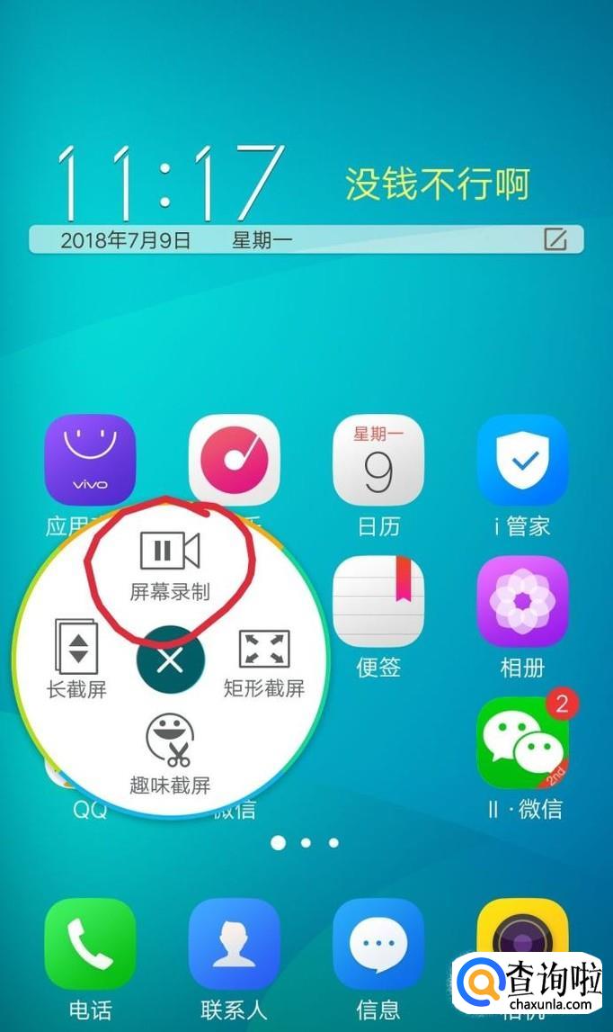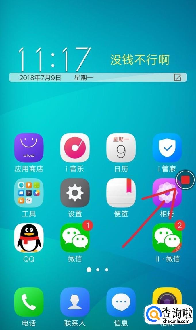 选择屏幕录制,如下图。 这个时候手机屏幕上会有一个红色的方块,这个就是表示开始录制你手机屏幕了!