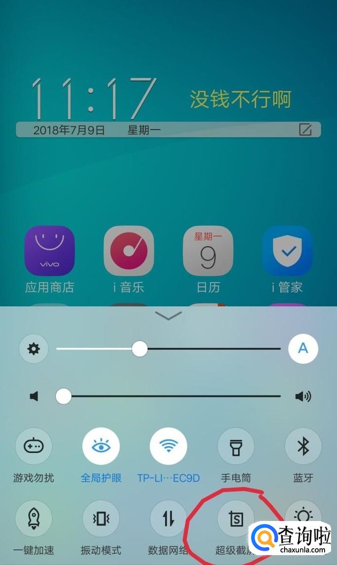 下面以我的vivo手机为例说明。打开手机向上划拉调出控制中心,点击超级截屏,如图所示。