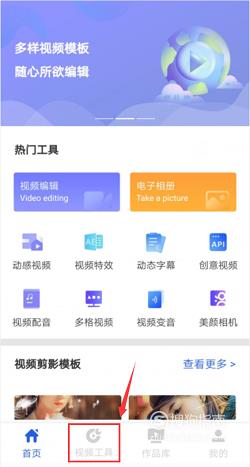 首先打开“清爽视频编辑器”,然后在首页下方的菜单栏中找到“视频工具”并点击。