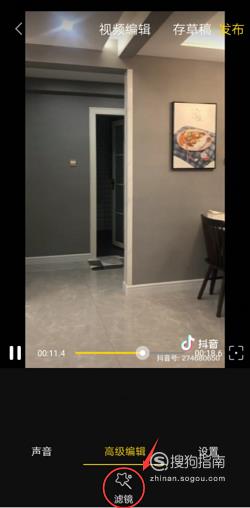 在视频编辑页面中,可以进行声音、高级编辑、设置三种操作。添加滤镜需要点击高级编辑模块中的“滤镜”功能。