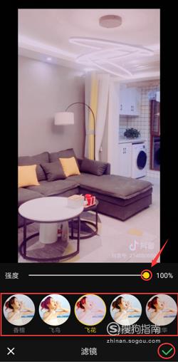 选择一个喜欢的滤镜,点击即可选择成功。滤镜添加成功后,通过调节黄色标点来控制滤镜的强度。设置成功后,点击右下角的“√”。