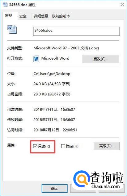 最后,我们点击应用和确定,这样我们就将此文件的属性给更改了,这个文件之后只能只读不能被编辑了。