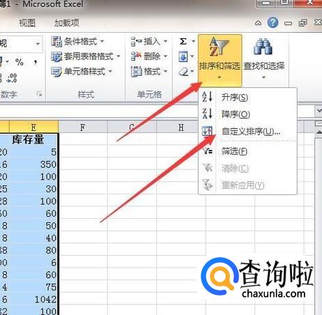 然后点击开始选项卡中的排序和筛选功能,在弹出的下级菜单中点击自定义排序。