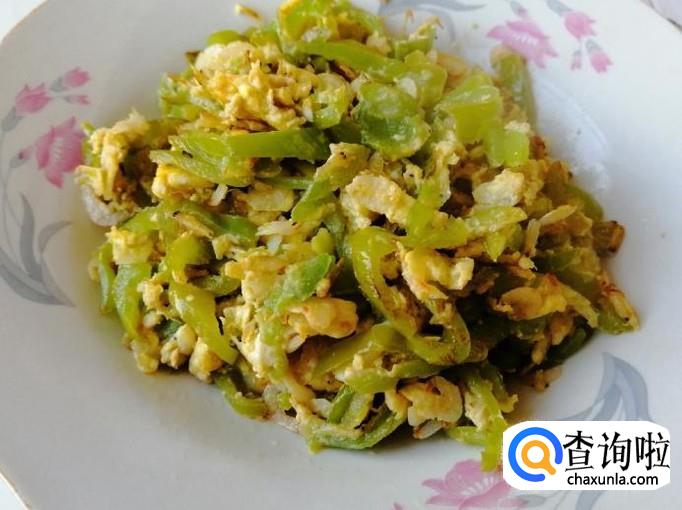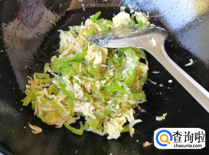 两个青辣椒,两个鸡蛋,两把虾皮,适量盐,适量醋