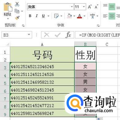 怎样用excel函数通过身份证号查性别?