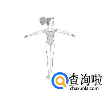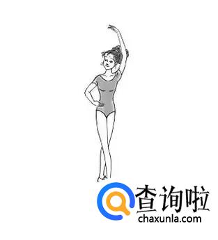 七位手:在六位手的基础上右手不动,左手打开到旁边,双手相同地放在身体的两边。