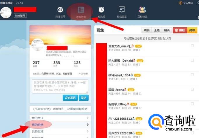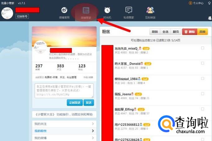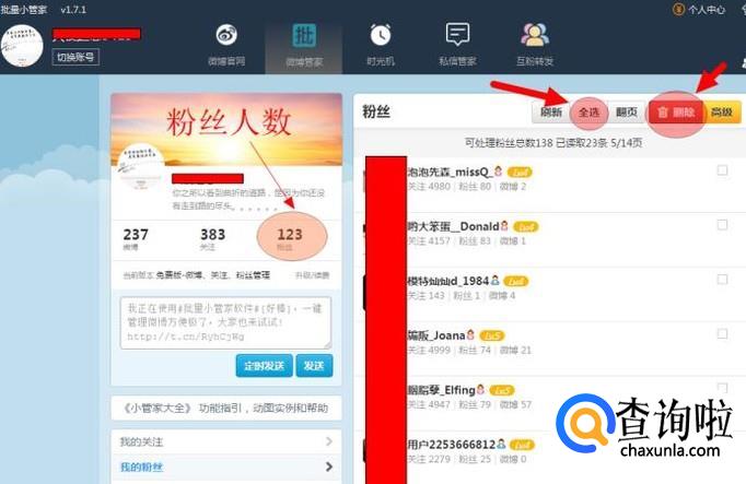 友情提示:此方法快捷、方便,但这是批量删除,一不留神就清除您的忠实粉丝,选择时请慎重。