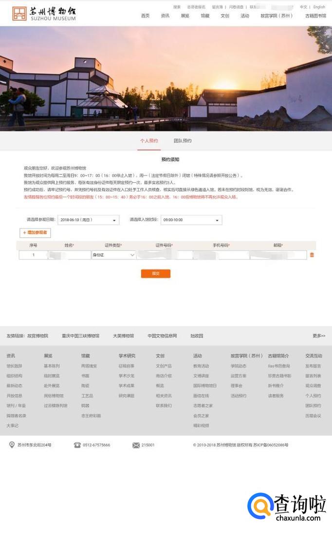 进入个人预约界面,显示预约通知,选择要去参观的日期和相应时间段,点击提交即可。