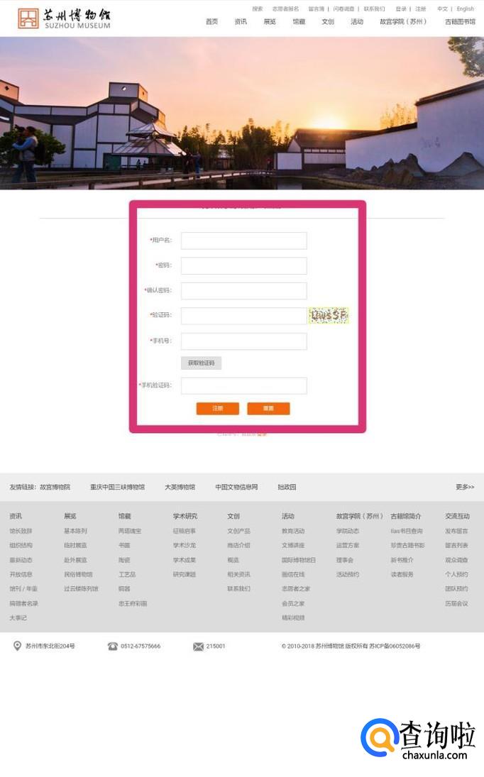 网页登录苏州博物馆官网,点击注册