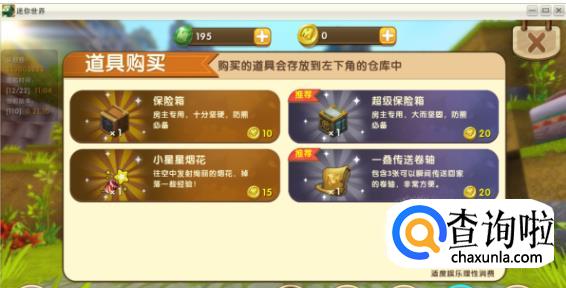 有了迷你币,可以在最下面的道具选项进行购买相关的道具。
