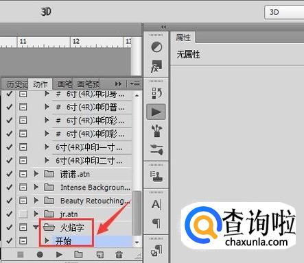 点击动作选项在动作面板内找到火焰字文件夹,然后在找到下面的播放按钮,如图所示: