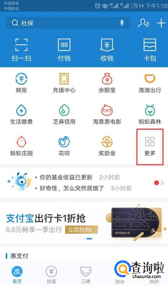 进入支付宝之后,我们点击更多;