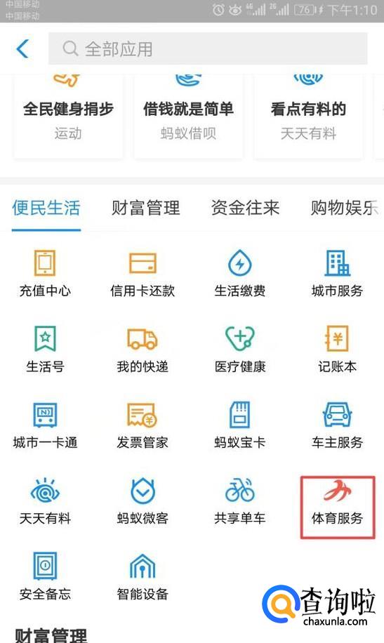 然后我们点击体育服务;