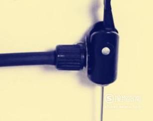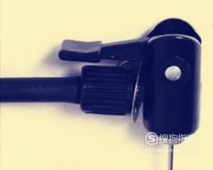 之后将气筒上的充气嘴插到气针顶部,将充气嘴上面的把手拉到另一边,以起到固定和预防漏气的作用。