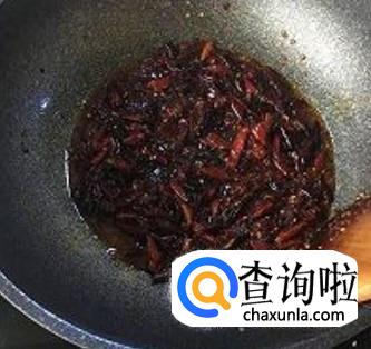 开火下油,油量要比平常炒菜多些,然后把全部配料放进去爆香。