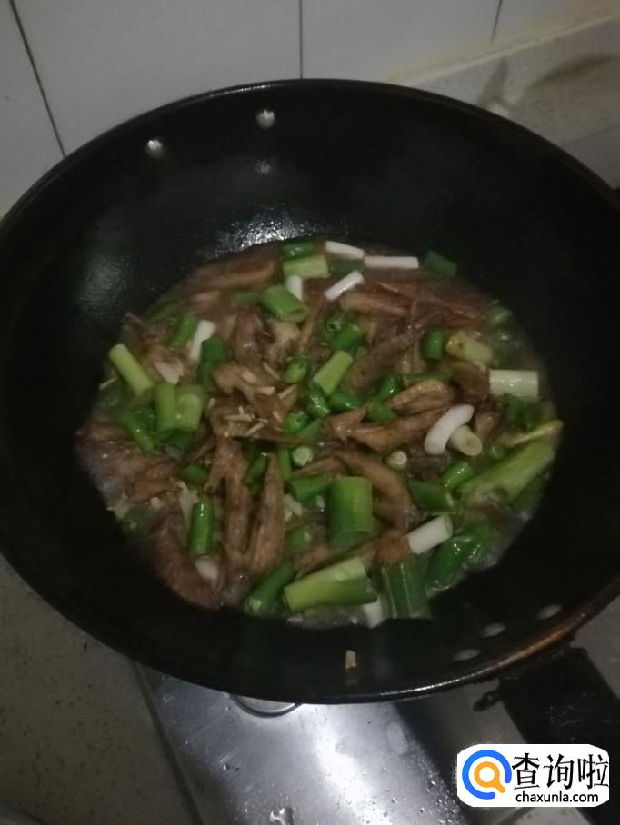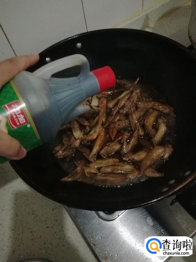 待锅里水汽烧干后,然后往锅里加入清油,把油烧滚。