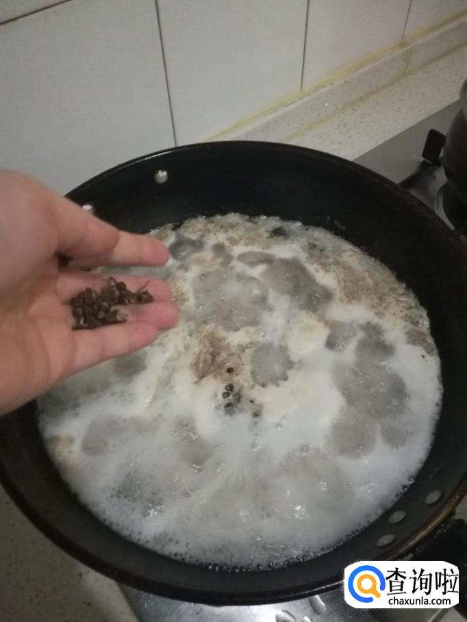 待锅里的水再次烧开后,揭开锅盖,往锅里加入适量干花椒。