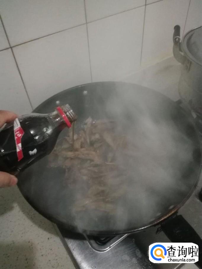 接着转小火,焖煮鸡翅,直到把锅里的可乐水烧干,大约需要5分钟。