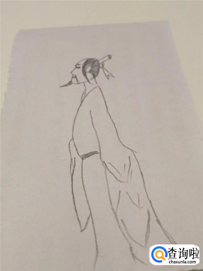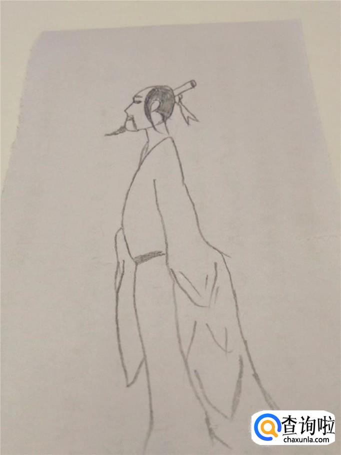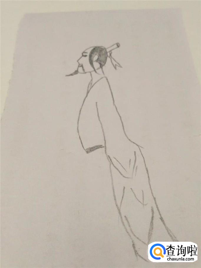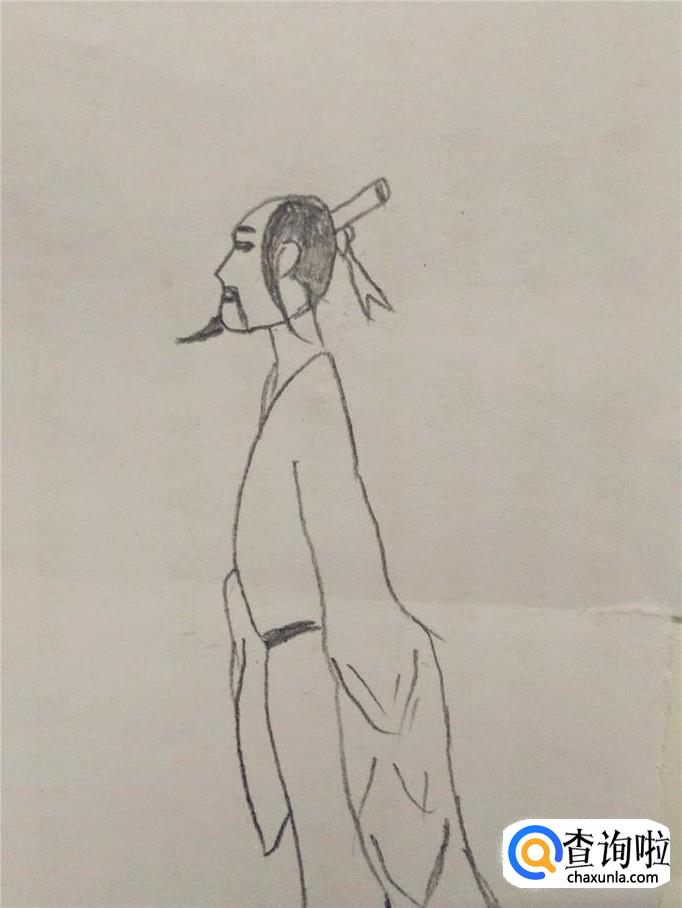 画屈原这个人物,要画得比较瘦,而且要画出昂首挺胸的姿态,下面就开始画屈原。