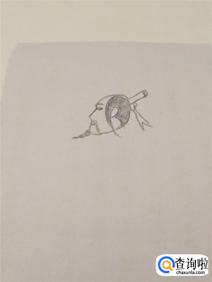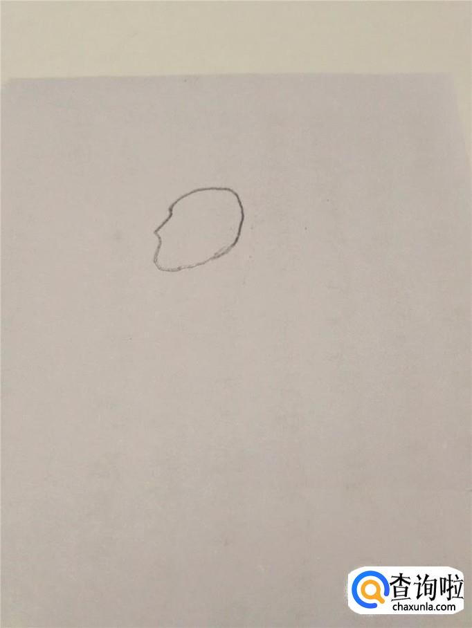 先画屈原的头,画一个斜着的橄榄形状,在头的左侧画两个尖刺,表示眼眶和鼻子。