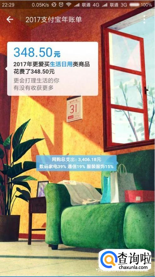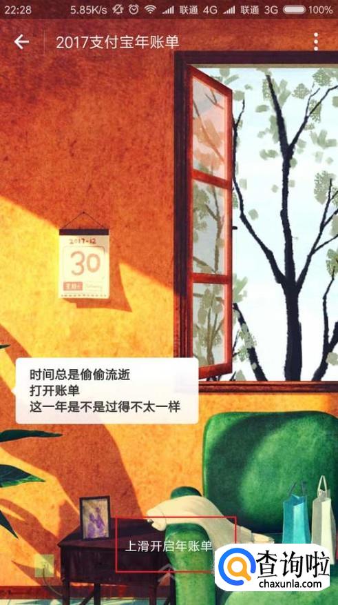 接下来,我们就可以看到支付宝年账单了,直接上划页面即可打开支付宝年账单。