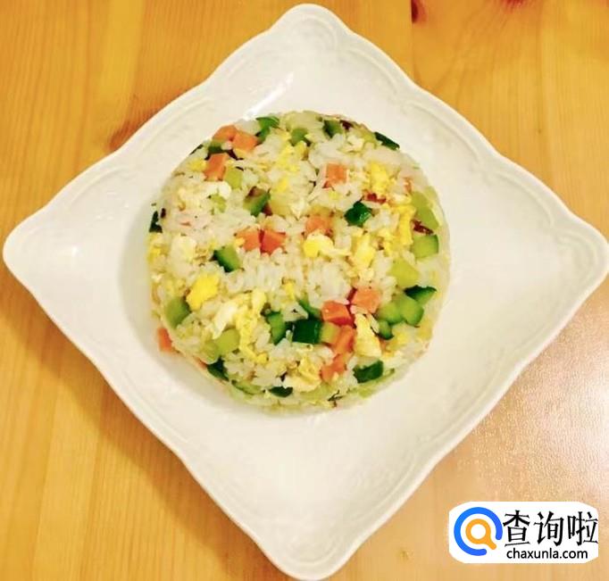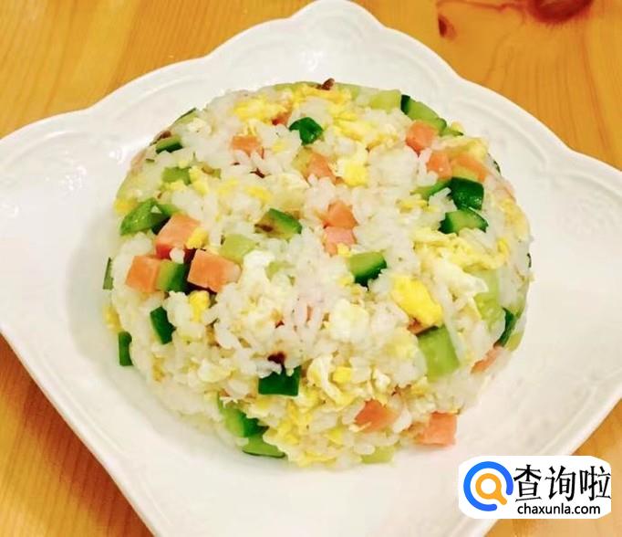 凉米饭,鸡蛋,黄瓜,火腿肠,葱,花生油,盐等等