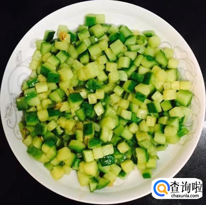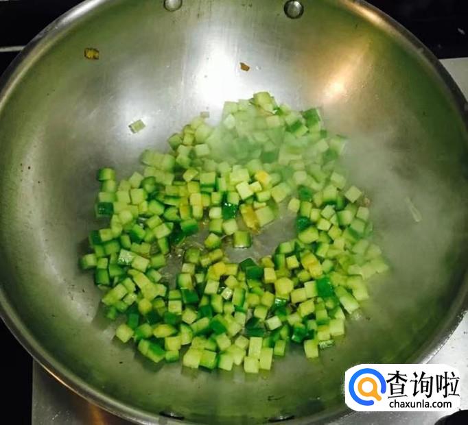 最后放入黄瓜丁再次翻炒均匀即可关火