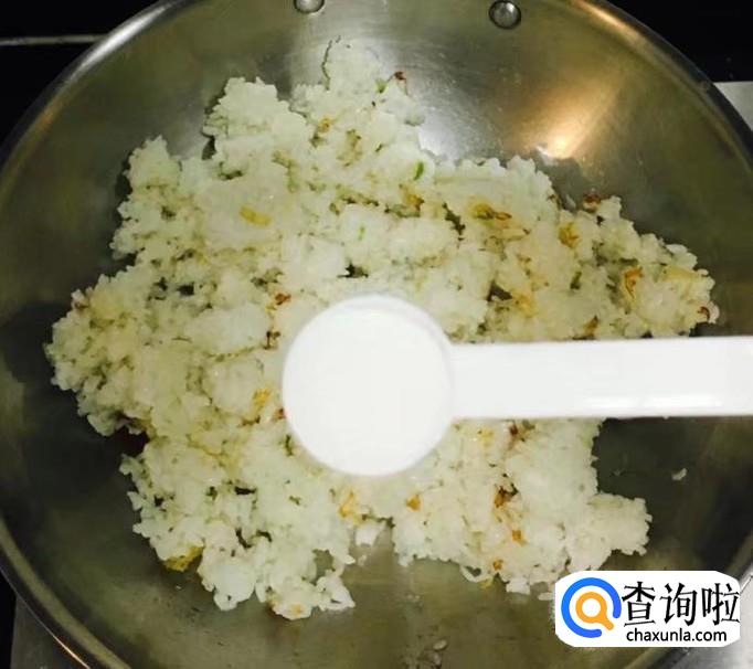 大葱剥去外皮清洗干净切成葱花,隔夜白米饭备好