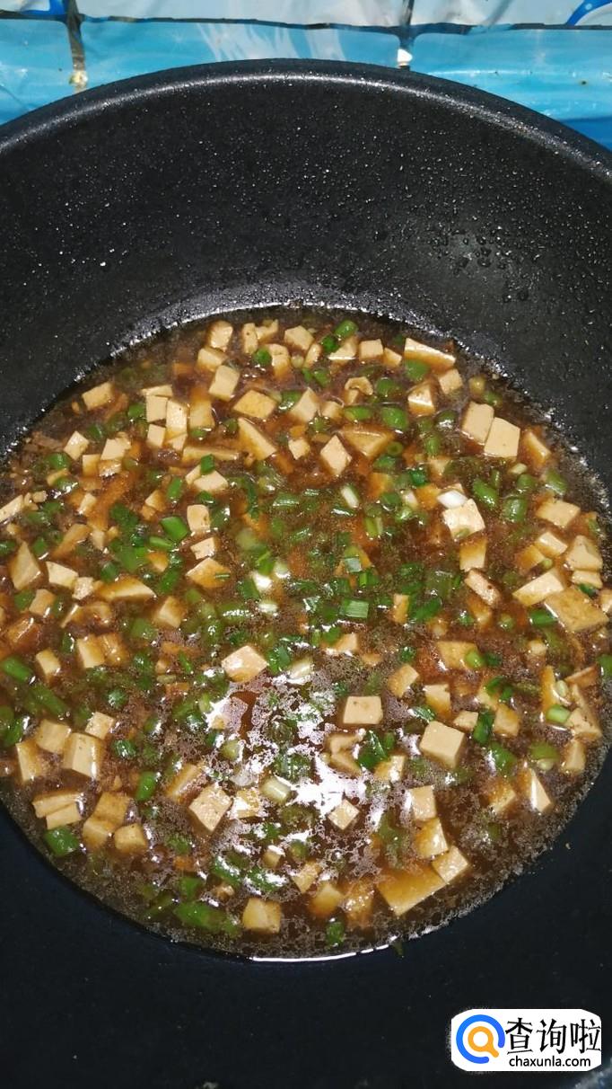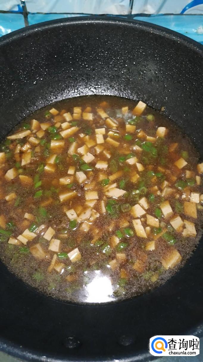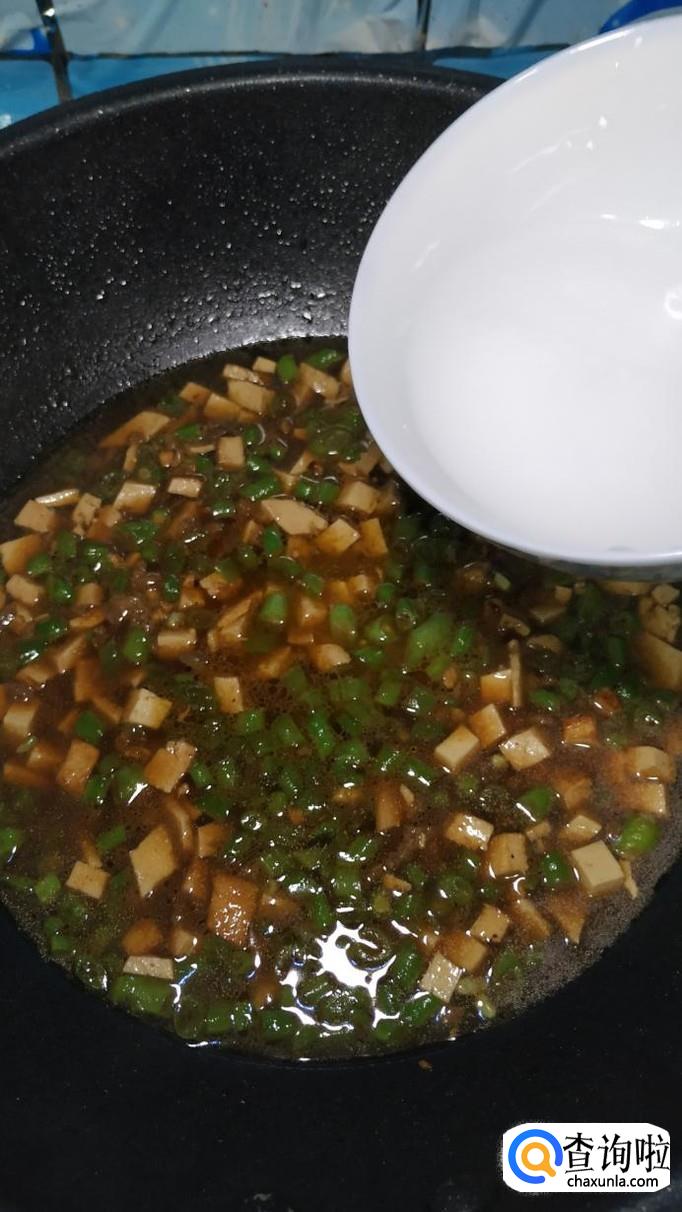 水开后转小火,再放入适量水淀粉,熬至汤汁浓稠。