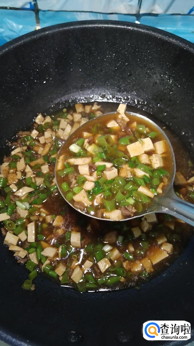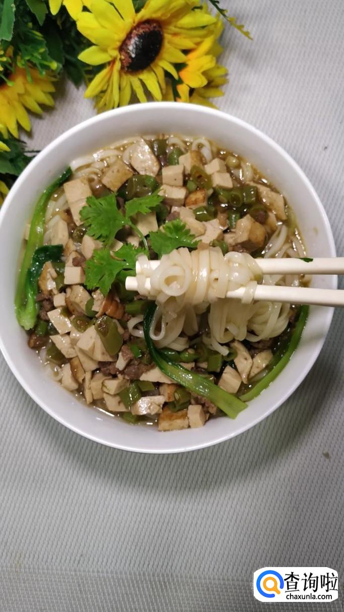 牛肉适量,豆腐适量,豆角适量,盐适量,鸡精适量,五香粉适量,料酒适量,生抽适量,面条适量,青菜适量,淀粉适量,甜面酱适量。