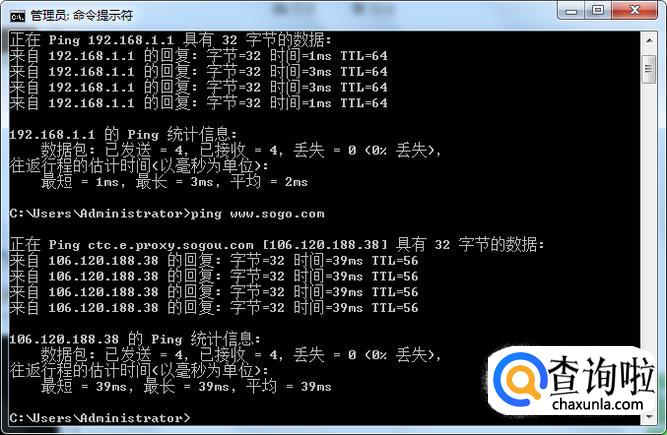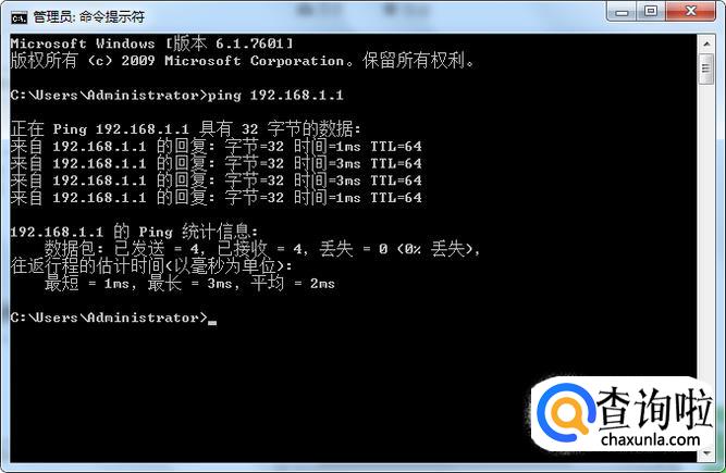 在命令行中输入 ping+自己的网关IP(如何查看网关在方法二)。