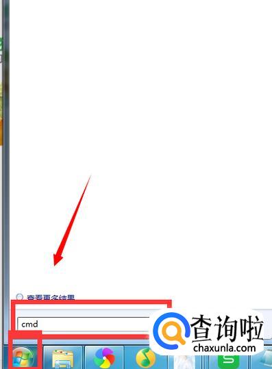 点击“开始”,然后在搜索框中输入“cmd”然后进行回车,打开命令提示符。