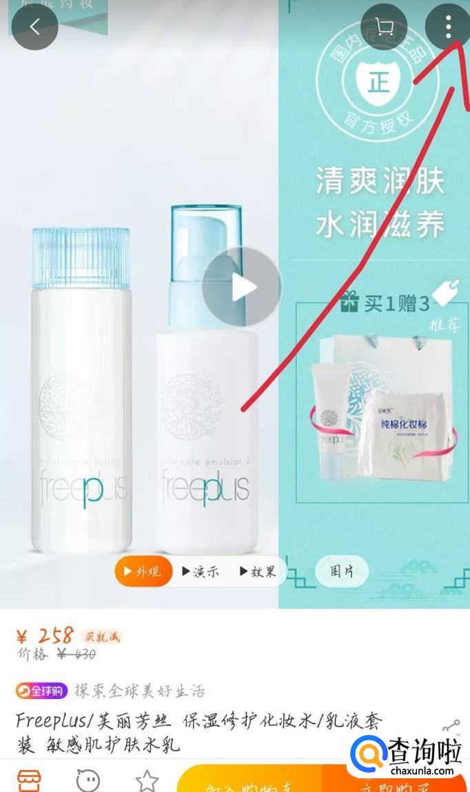上述方法是别人给你的淘口令,你也可以把淘口令给别人。打开你想要分享的商品的界面,如图1所示。点击右上角的3个点点,如图2箭头所示。再点击分享。以后直接粘贴给别人就可以了