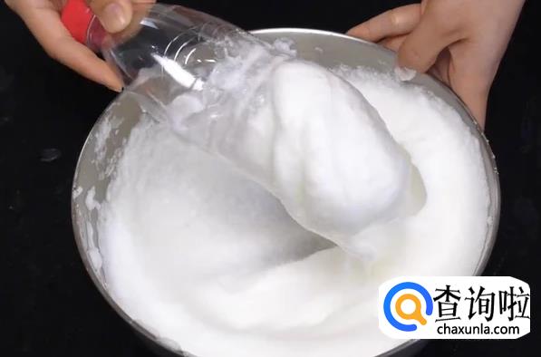然后手握矿泉水瓶盖子上方,用力朝一个方向搅拌蛋清,尽量中途不要停,直到打好即可。