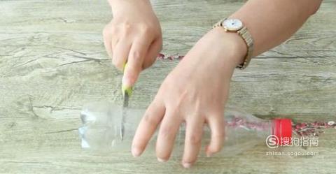 然后用小刀或者剪刀将矿泉水瓶下方剪出口子,剪成宽约1CM左右的长条就可以了。