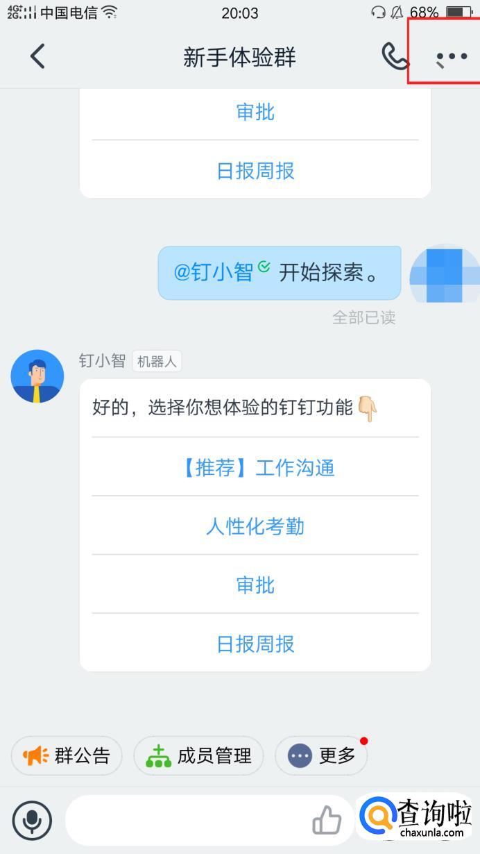 首先,先进入群聊,点击右上方的选项。