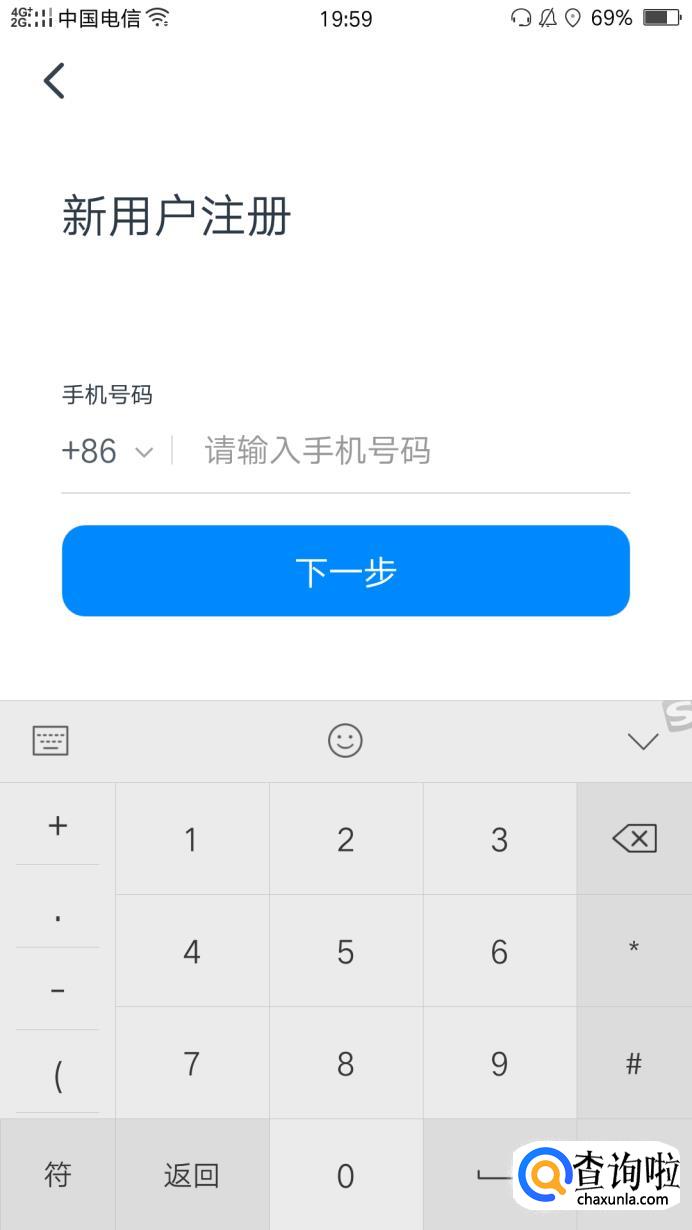 输入手机号进行注册,点击下一步。