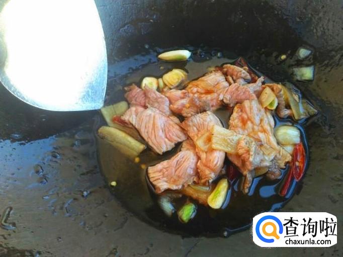 将肉片放进锅里,依旧用小火翻炒。