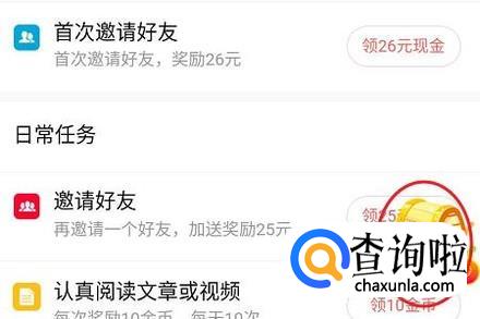 以上获得的均为金币,金币需要兑换为人民币才可提现,不过最为赚钱的方法是邀请好友一起来下载和使用该APP,邀请一位好友就能得到人民币26元呢!