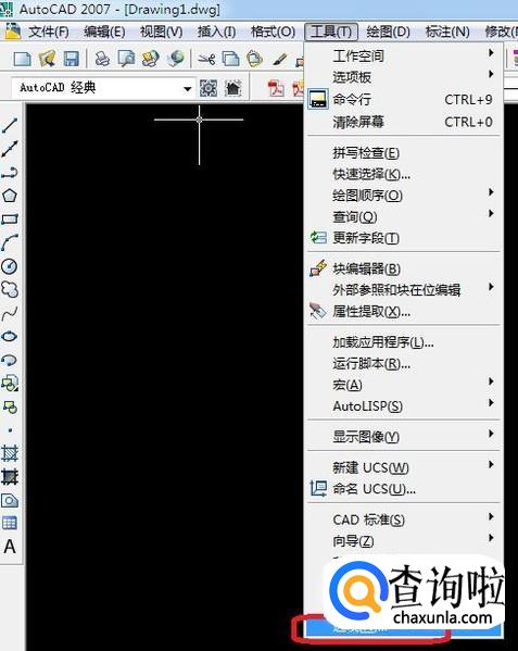首先,我们打开CAD,如图所示,点击菜单栏“工具”,然后在下拉菜单中选择“选项”。
