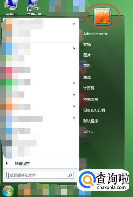首先,我们打开电脑,点击视窗键弹出的菜单,如图,选择标圈的“用户帐户”图标进入。