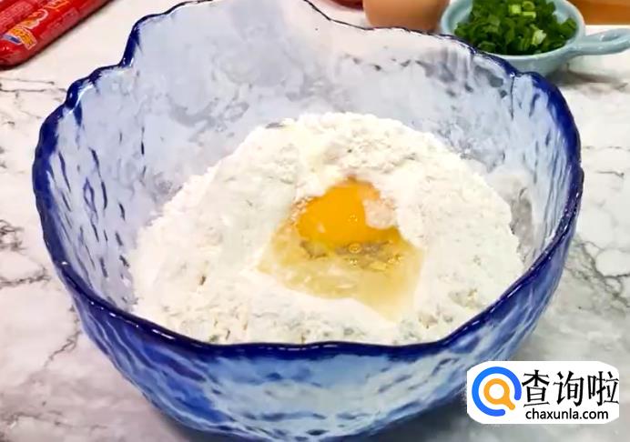 先将鸡蛋打入面粉里备用。